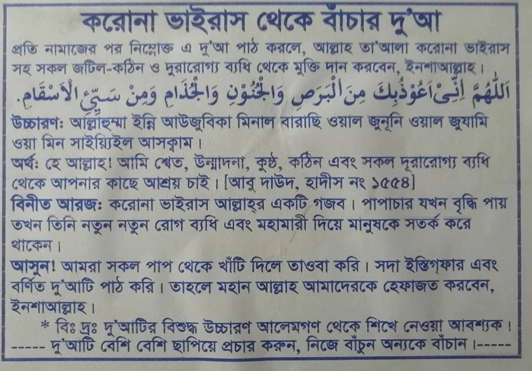 তাহলে দোয়ার উপরে সরাসরি ‘করোনাভাইরাস’-এর কথা লিখলেন কেন?