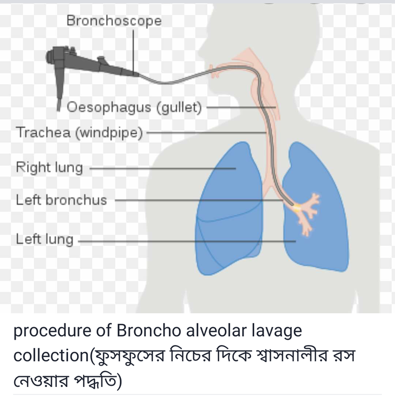 1.Bronchoalveolar lavage fluid অর্থাৎ ফুসফুসের নিচের অংশে শ্বাসনালীর রস থেকে কালেকশন করলে ৯৩%।